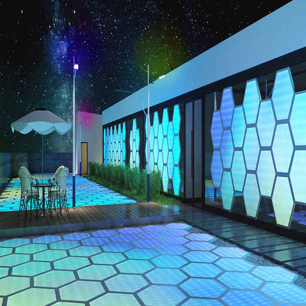 侧墙安装光能宝盒,可以充当幕墙,不仅可以透光还能发电,更能晚上亮化,设计出不同的亮化效果,让建筑在夜晚也能闪闪发光,关键还是不用电费。